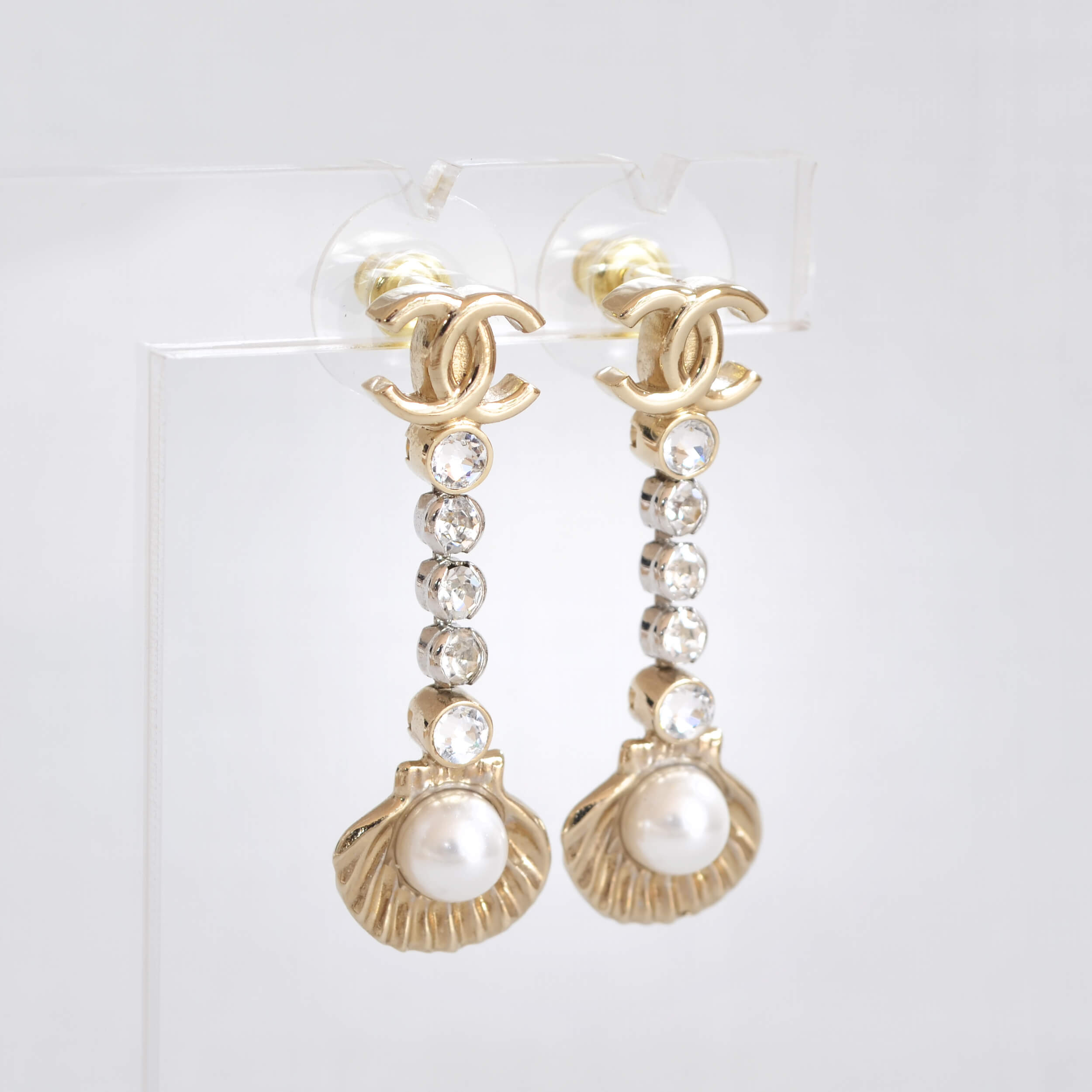 Diese CHANEL 25C CC Shell Crystal Drop Ohrringe aus zweiter Hand sind in einem neuwertigen Zustand.